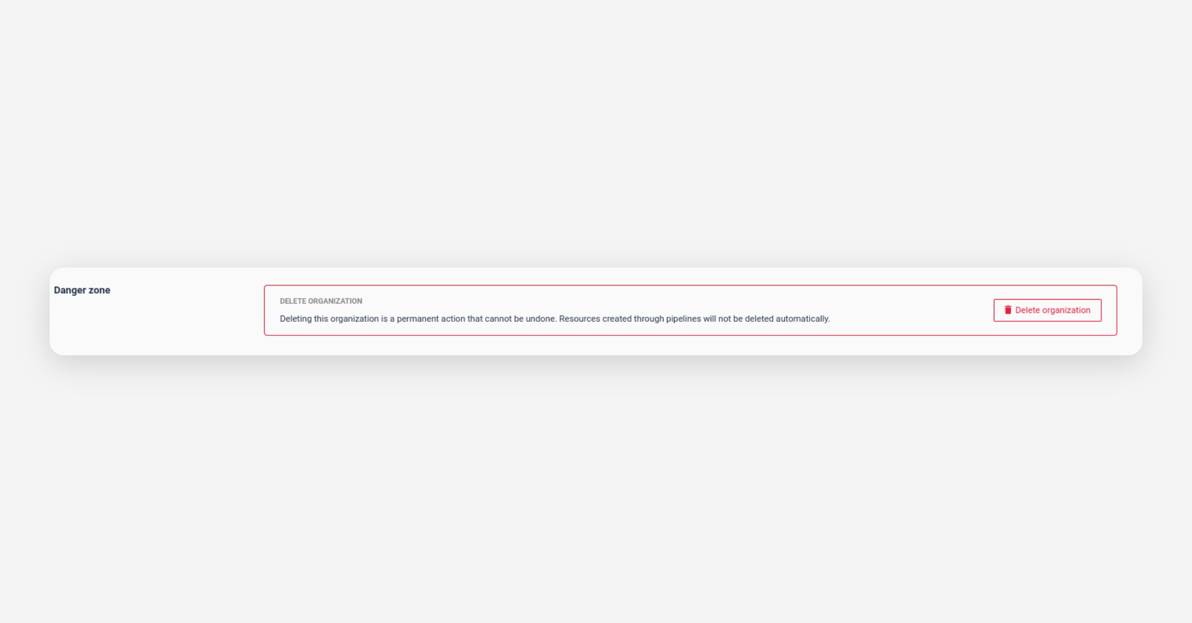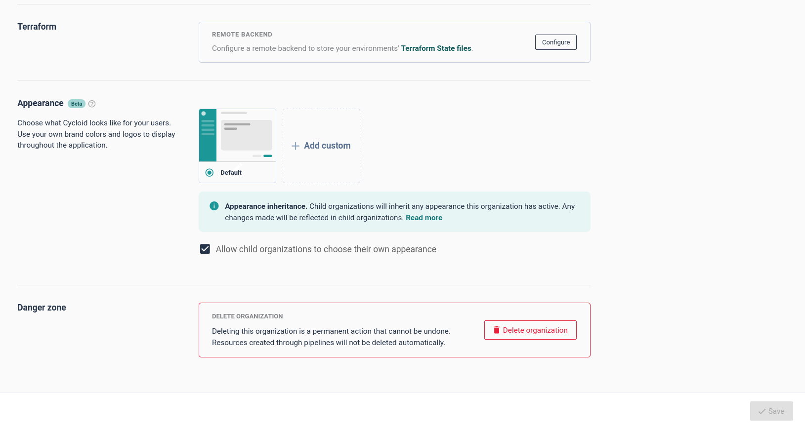 This is where you can delete an organization.