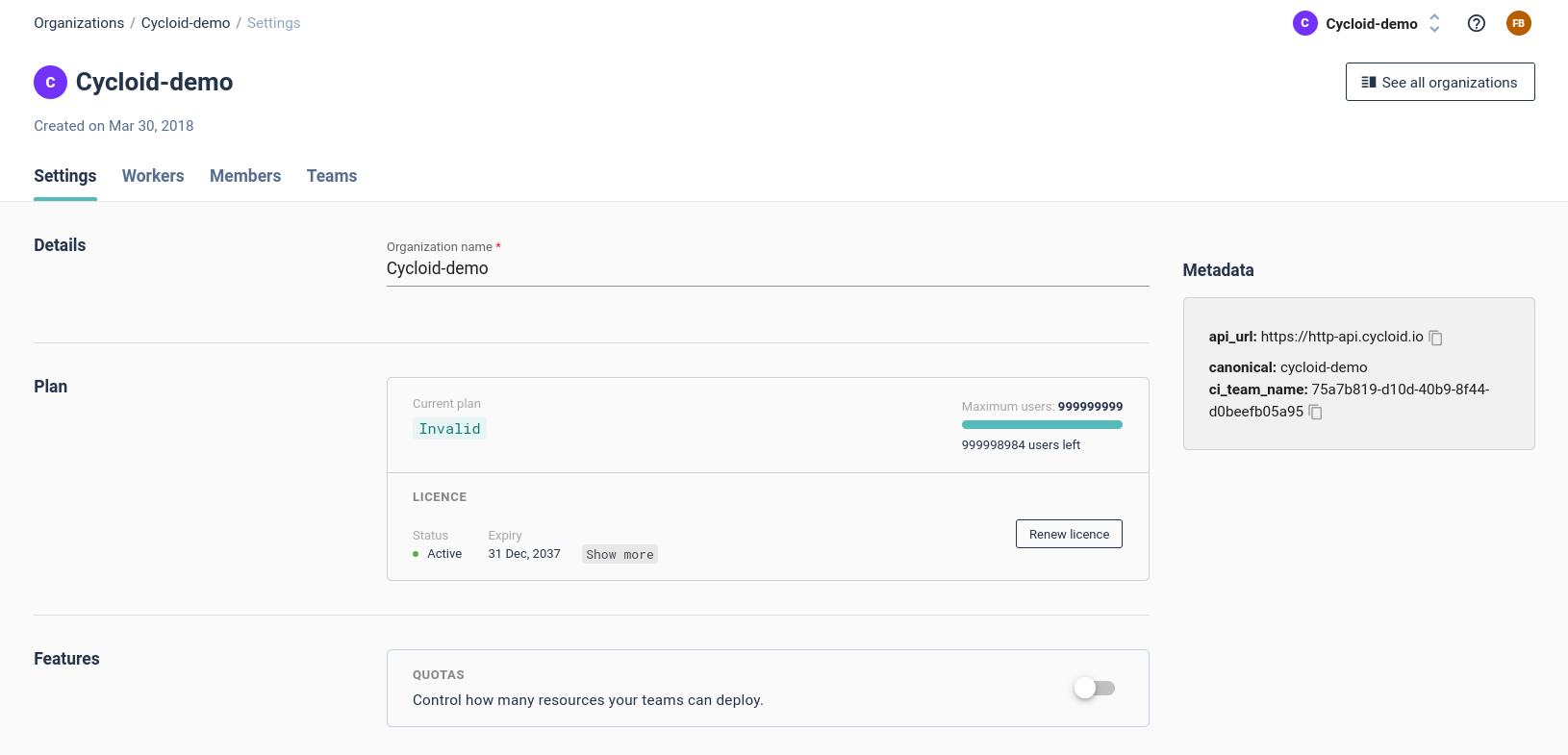 You can enable/disable some cycloid features here.