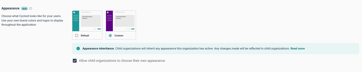 This section allows you to change the theming of the current org.