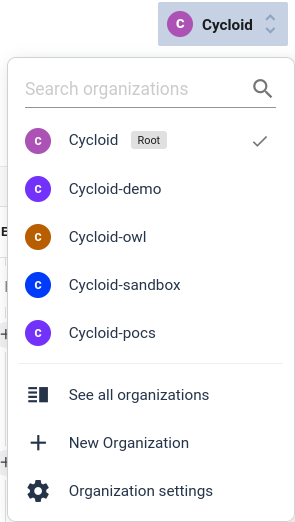 In the all organization panels you will be able to list and find all organizations you have access to.