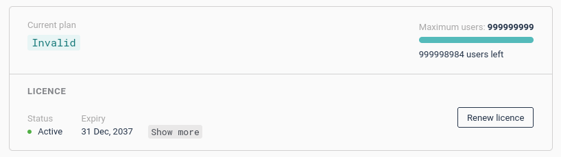This widget will display the number of available seats and your current licence status for cycloid.