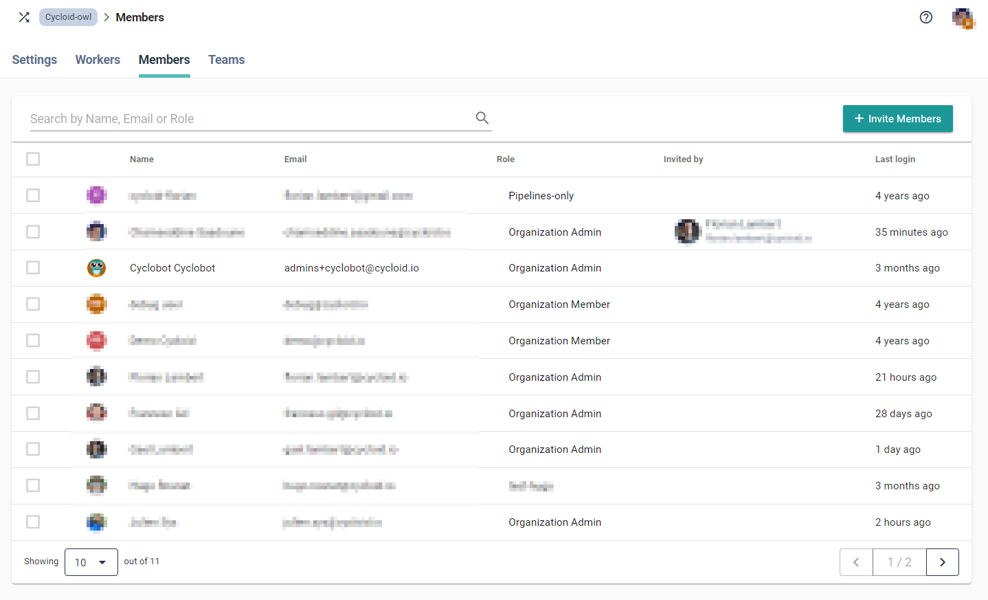 Inside Cycloid permissions are handled by roles which are an aggregation of policies. Those roles can then be assigned to a user at the organization level as a 'default role', or at a team level to provide extra permissions to a set of users within a team.